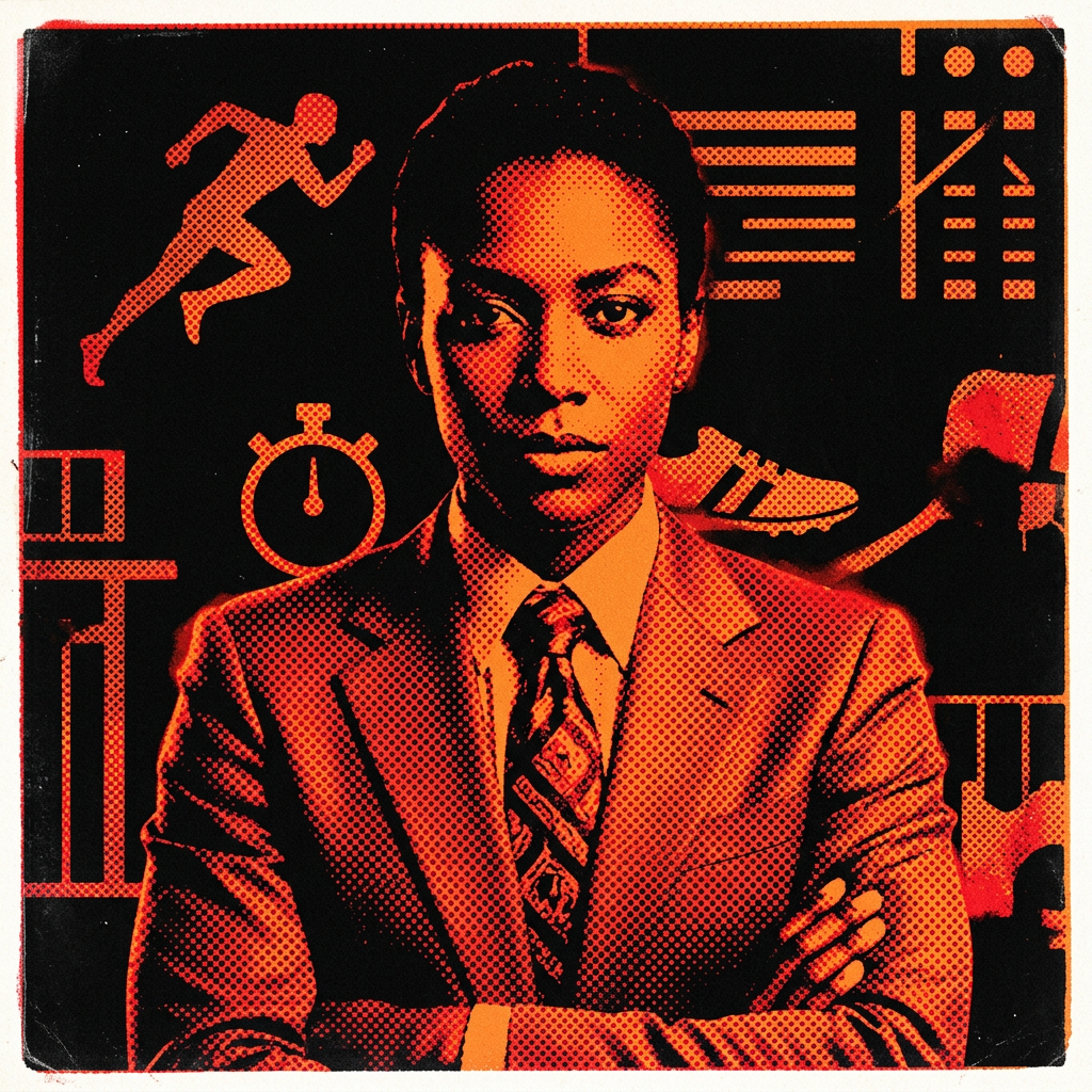 Bold duotone screen prints with vintage athletic motifs capturing retro stadium energy for fitness trackers and sports apps.
