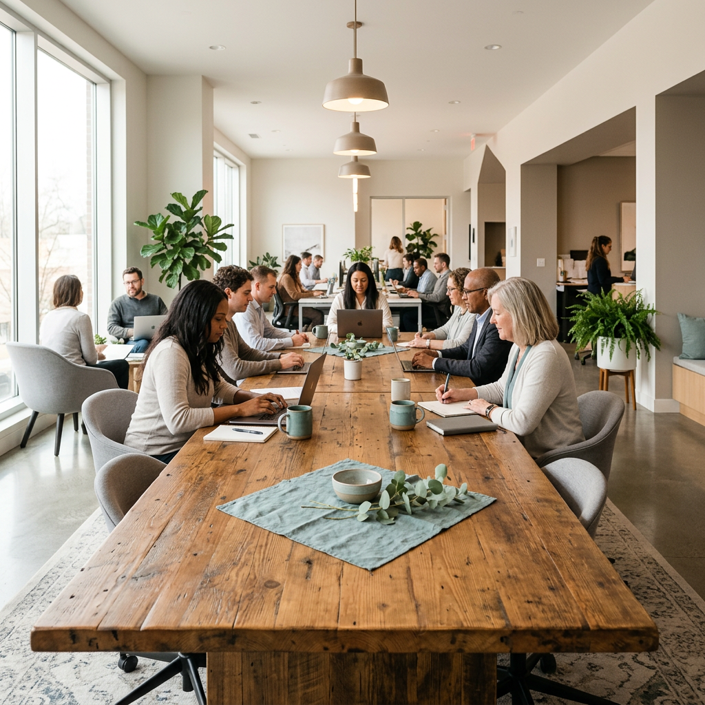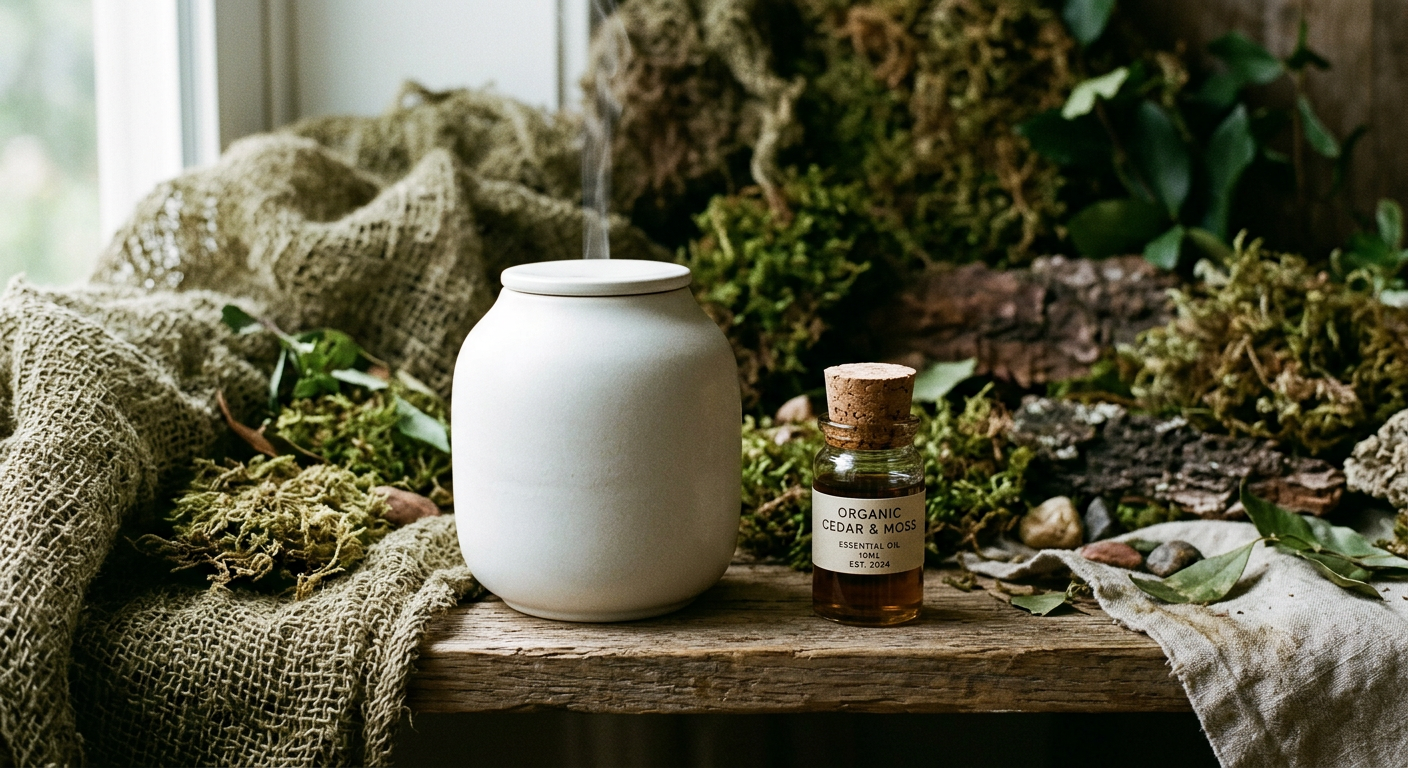 Warm, natural photography featuring reclaimed wood textures, soft daylight, and organic styling.