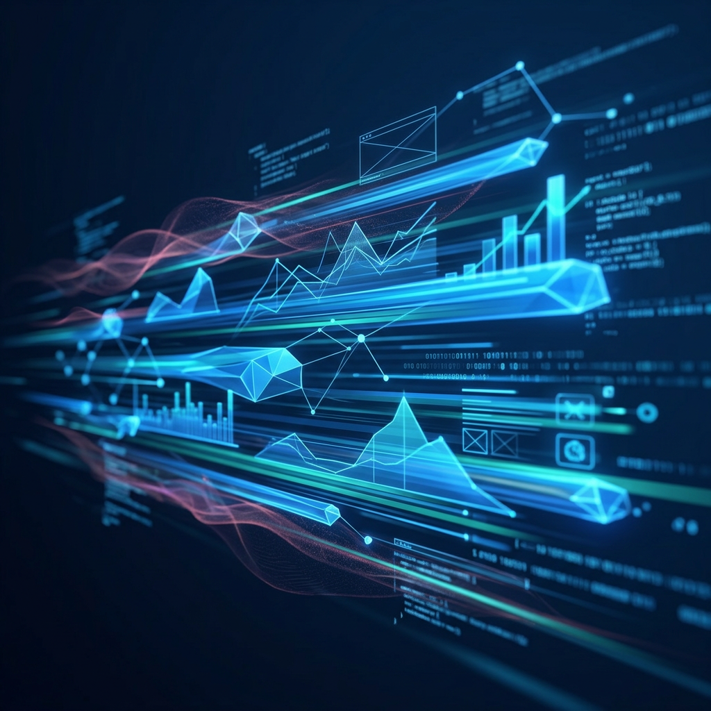 Ghostly high-velocity phantoms racing through minimalist tracks, embodying premium speed for developer tools.