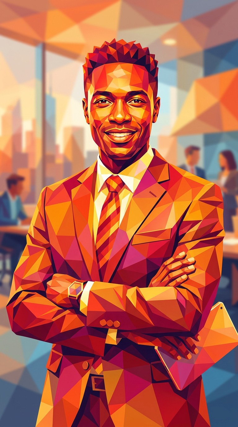 Bold, saturated low-poly geometries with warm tone gradients for fitness trackers and sports apps.